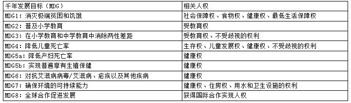 千年發(fā)展目標(biāo)(MDGs)與相關(guān)人權(quán)標(biāo)準(zhǔn)