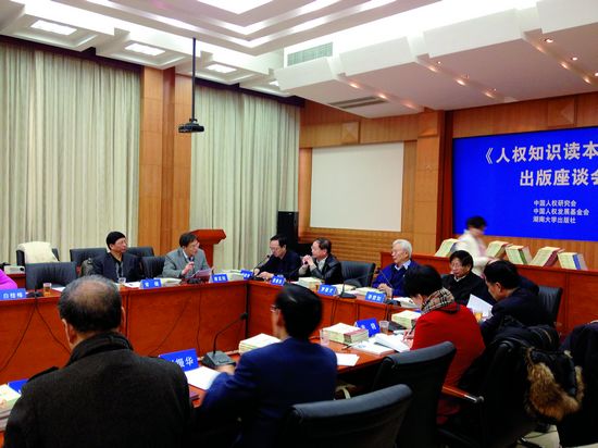 2013年1月11日,中國人權(quán)研究會、中國人權(quán)發(fā)展基金會和湖南大學出版社在北京召開《人權(quán)知識讀本叢書》出版座談會。來自政府部門等方面的30多名代表參加了座談會。與會者認為,這套《人權(quán)知識讀本》叢書將成為我國最權(quán)威的人權(quán)知識教科書。