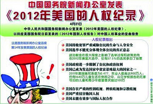 中國國務(wù)院新聞辦公室發(fā)布2012年美國人權(quán)紀(jì)錄
