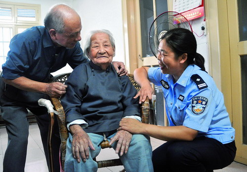 此后數(shù)月,她逐個兒找老人的子女談話,了解其錯綜復(fù)雜的家庭糾紛及不盡贍養(yǎng)義務(wù)的真正原因,并在他們之間塔起了一座勾通的“橋梁”。經(jīng)過她的不懈努力,兄弟姐妹之間漸漸消除了誤會、解除了心結(jié)、化解了隔閡。緊接著,戴紅梅主持召開家庭調(diào)解會。她講法律,談倫理,敘親情,道中華民族的傳統(tǒng)美德。“烏鴉反哺,羔羊跪乳,百善孝為先……”戴紅梅動之以情,曉之以理,以真情和真誠感動了老人的子女。“戴警官,我錯了,我今天就將老爸接回家!”老人的長子第一個表態(tài)。“我每月給老爸200元生活費!”小女兒當(dāng)即付了兩個月的生活費……2012年“重陽節(jié)”這一天,老人的生活終于有了著落,6個子女均同意履行贍養(yǎng)老人的義務(wù),老人臉上露出了久違的笑容。
