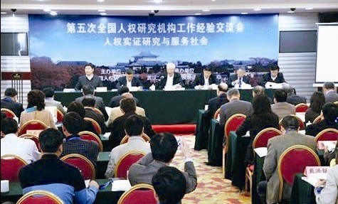 2013年11月5日至6日,第五次全國人權(quán)研究機(jī)構(gòu)工作經(jīng)驗(yàn)交流會在武漢大學(xué)召開,百余名專家學(xué)者,以“人權(quán)實(shí)證研究與服務(wù)社會”為主題,分享工作經(jīng)驗(yàn),探討有效策略,取得豐碩成果。第十屆全國政協(xié)副主席、中國人權(quán)研究會會長羅豪才,國務(wù)院新聞辦七局局長魯廣錦,中國人權(quán)研究會副會長陳士球,中國社會科學(xué)院榮譽(yù)學(xué)部委員李步云、劉海年,武漢大學(xué)教授李龍、武漢大學(xué)法學(xué)院院長肖永平等人參加會議。武漢大學(xué)校長李曉紅,校黨委副書記駱郁廷等出席開幕式。本次會議由中國人權(quán)研究會主辦、武漢大學(xué)公益與發(fā)展法律研究中心(簡稱公益法中心)承辦。
