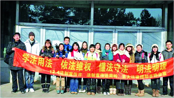 其次,深入開展法律援助和普法活動。2011年12月吉林省法律援助中心吉林大學(xué)法學(xué)院法律援助工作站成立,由法學(xué)院10多位教師作為法律援助指導(dǎo)教師,負(fù)責(zé)指導(dǎo)法學(xué)院的研究生和本科生組成的法律援助志愿者團隊。工作站以向需要法律援助的社會弱勢群體提供免費法律服務(wù)為宗旨,以網(wǎng)絡(luò)服務(wù)、電話咨詢、來信來訪、代寫訴狀、代理仲裁與訴訟、普法教育、人員培訓(xùn)為服務(wù)內(nèi)容。自成立以來,工作站在提供法律援助和推動普法方面取得了良好的效果。