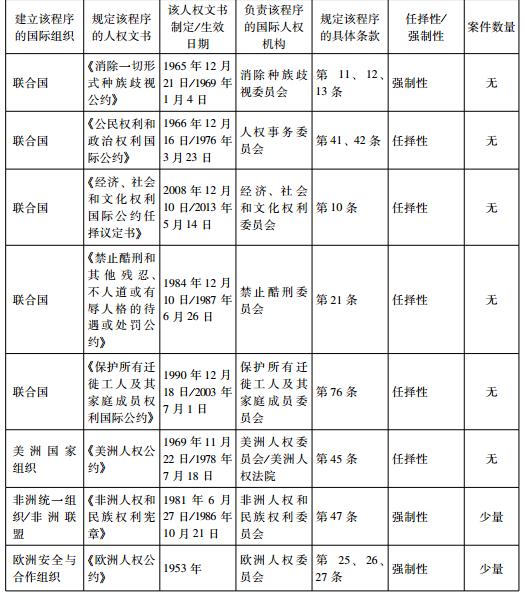 目前,共有十一項國際人權(quán)文件規(guī)定了國家間指控(來文)程序。下列表格簡要說明了該程序的基本情況。