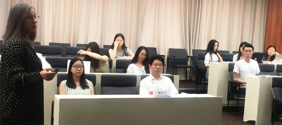 在問答環(huán)節(jié),她向在座的各位同學(xué)提出了一個(gè)問題:“中國對女性犯罪問題的觀點(diǎn)是什么?”,同學(xué)們積極與Linton教授互動。有同學(xué)表示女性往往是作為受害者和弱勢群體,鑒于人們的憐憫,女性犯罪者可能從這種觀念中獲益。也有同學(xué)結(jié)合社會背景對女性走上犯罪道路表達(dá)了自己的思考。還有同學(xué)提出女性遭受國家侵害時(shí),例如慰安婦們,國家能否成為被告。Linton教授表示,目前還沒有這樣的法律機(jī)制。