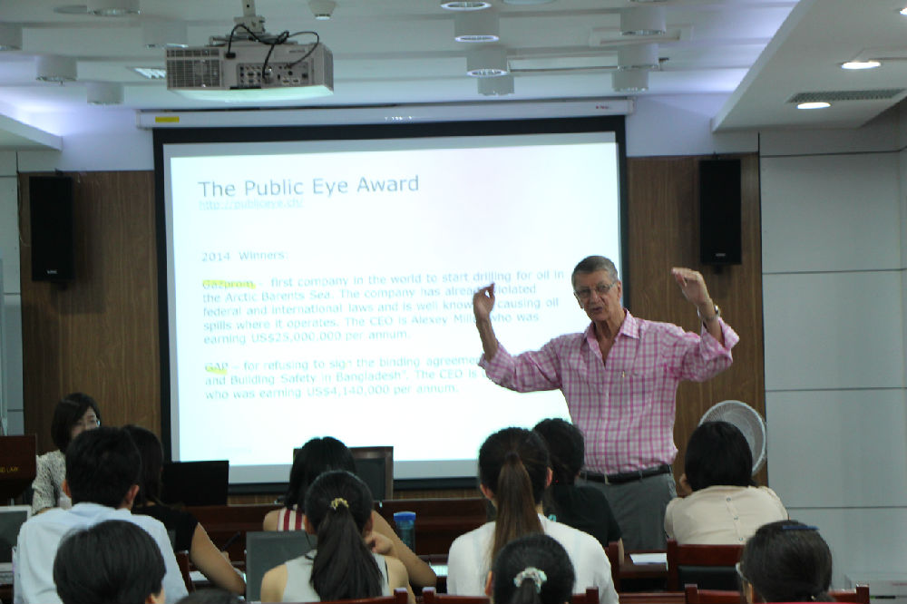 在課程伊始,前瑞典隆德大學羅爾·瓦倫堡人權與人道法研究所所長、現(xiàn)中國政法大學Gudmundur Alfredsson教授對于國際人權法的淵源、框架和發(fā)展作了詳略得當?shù)慕榻B。北京大學法學院人權與人道法研究中心主任龔刃韌教授對于人權發(fā)展的歷史作了導論性的講解說明,上述課程對于參課學生進行接下來的深入學習奠定了良好基礎。在接下來的課程中,前瑞典隆德大學羅爾·瓦倫堡人權與人道法研究所教授、現(xiàn)歐盟基本權利機構公平審判部部長Jonas Grimheden教授介紹了國際組織與人權保障之間的關系、國際人權保障義務的監(jiān)督實施機制。Gudmundur Alfredsson教授結合《經(jīng)濟、社會和文化權利公約》講授了經(jīng)濟、社會和文化權利的的確立與內(nèi)涵以及良善之治的應有之義。前澳大利亞人權委員會聯(lián)邦委員Brian Burdekin AO教授從理論和實踐兩個角度講授了有關國家人權機構的組成與職能,就國家人權機構在國家層面上防止酷刑、殘障人士權利保障問題以及難民與國內(nèi)流離失所者的保護問題等方面的貢獻作出介紹,并對于工商業(yè)與人權、腐敗問題與人權等新興領域相關知識進行了詳實講授?,F(xiàn)任聯(lián)合國人權事務高專辦辦公室主任的Christophe Peschoux先生詳盡介紹了人權事務高專辦在人權領域的實踐工作與包括特別程序、普遍定期審議程序在內(nèi)的聯(lián)合國人權保護機制,并通過分組討論的形式組織參課學生對于人權與文化相對主義之間的關系進行自主性學習。法國斯特拉斯堡大學名譽校長Florence Benoit-Rohmer女士對于歐洲人權保護機制以及宗教信仰自由權相關知識進行了深入淺出的講解。我國人權法學界著名學者、中國社會科學院法學所研究員、廣州大學人權研究中心主任李步云教授結合自己多年來在人權領域的實踐經(jīng)驗就中國人權理論的發(fā)展為大家上了生動的一課。北京大學法學院教授、人權與人道法研究中心執(zhí)行主任白桂梅女士就民族自決權做了詳實介紹。來自聯(lián)合國難民署駐中國辦公室的Elasa Fitrishiana 女士和Lola Yu Zhou女士分別對于難民公約相關的難民保護事項、難民署職能以及國際法的國籍認定、難民署在無國籍人領域的職能進行了介紹。國際紅十字會東亞地區(qū)代表處Richard Desgagne先生則為學生講授了有關國際人道法最核心基礎知識,使之明確了人道法與人權法的基本關系,并重點介紹了國際人道法體系對于戰(zhàn)時各方人員的保護。