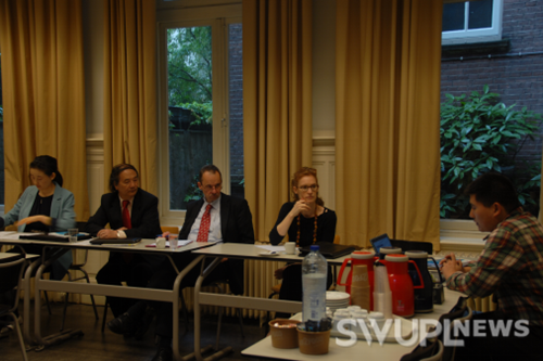 在荷蘭烏特勒支大學法學院6月14日舉辦的“中國人權(quán)發(fā)展狀況”研討會上,張永和教授詳細介紹了中國人權(quán)事業(yè)的發(fā)展概況,并著重介紹了剛剛發(fā)布的《〈國家人權(quán)行動計劃(2012—2015年)〉實施評估報告》及近年來我國人權(quán)事業(yè)取得的關(guān)鍵性進展。朱穎副院長作了中國關(guān)于公民權(quán)利和政治權(quán)利問題的專題發(fā)言,介紹了我國在公民權(quán)利和政治權(quán)利問題保障上取得的積極成果。李娟博士作了關(guān)于婦女權(quán)利保障問題的專題發(fā)言。王隆文博士作了有關(guān)教育權(quán)保障問題的專題發(fā)言。代表團還就中國人權(quán)的發(fā)展問題同烏特勒支大學法學院教授、荷蘭人權(quán)研究會主任Tom Zwart、荷蘭人權(quán)季刊編輯Julia等參會學者進行了深入交流,并同Tom Zwart教授就師資交換、研究生培養(yǎng)、國際高專人才項目開展等方面達成合作意向。