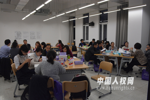 此次培訓(xùn)采取講、學(xué)、研“三位一體”的方式,旨在就公務(wù)員人權(quán)培訓(xùn)的課程設(shè)計、培訓(xùn)方式、熱點難點等問題展開充分交流。南開大學(xué)人權(quán)研究中心副主任常健教授首先介紹了新一期國家人權(quán)行動計劃的主要內(nèi)容和特點以及對公務(wù)員人權(quán)知識教育的要求,并對公務(wù)員人權(quán)培訓(xùn)的主要內(nèi)容和需要解決的問題進行講解,回答了與會者提出的問題。根據(jù)與會者的工作崗位,培訓(xùn)分成了講習(xí)班和研討班兩組進行。在講習(xí)班上,圍繞南開大學(xué)人權(quán)研究中心編著的《公務(wù)員人權(quán)培訓(xùn)學(xué)員用書》和《公務(wù)員人權(quán)培訓(xùn)教師用書》兩本教材,采用角色扮演、視頻教學(xué)、分組辯論等方式,開展多樣化的實驗教學(xué),與會教師積極參與教學(xué)活動,針對公務(wù)員人權(quán)培訓(xùn)中的課堂設(shè)計、教學(xué)方法等問題集思廣益,場面非常熱烈。在研討班上,各位教研部主任交流了各自學(xué)院開展人權(quán)教育的實際情況和面臨的問題,并就如何將人權(quán)知識教育融入黨校、干部學(xué)院、行政學(xué)院和警官學(xué)校的課程交流了看法,提出了很多積極可行的建議。最后,兩組參會者就如何有效地開展公務(wù)員人權(quán)培訓(xùn)進行了交流。與會者一致認為,對公務(wù)員開展人權(quán)培訓(xùn)是落實“國家尊重和保障人權(quán)”的憲法原則和國家人權(quán)行動計劃要求的必行之舉,同時也對公務(wù)員提高人權(quán)保障意識、防范職業(yè)風(fēng)險具有重要作用。應(yīng)當(dāng)根據(jù)各類干部培訓(xùn)院校的課程要求,采取靈活多樣的形式將人權(quán)知識融入到各門課程中去。不僅應(yīng)在憲法、行政執(zhí)法、刑事訴訟法等法律課程中介紹所涉及的人權(quán)內(nèi)容,而且還可以在有關(guān)“四個全面”的課程中結(jié)合相關(guān)人權(quán)內(nèi)容,在各類黨性教育課程中講述中國共產(chǎn)黨是如何尊重和保障人權(quán)、促進人權(quán)事業(yè)發(fā)展的,并通過各種現(xiàn)實案例的分析提高公務(wù)員的人權(quán)意識和人權(quán)保障水平。