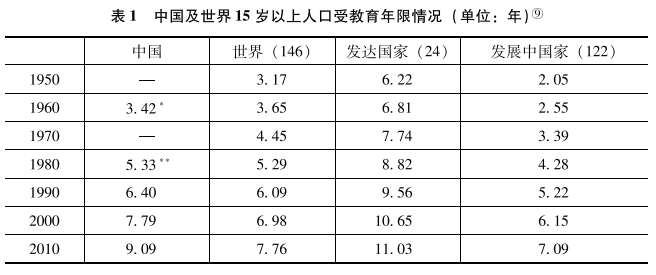 數(shù)據(jù)來(lái)源:Robert J.Barro,JongWha Lee.A NEW DATA SET OF EDUCATIONAL ATTAINMENT IN THE WORLD,1950-2010, Http://ideas.repec.org/p/nbr/nberwo/15902.html。