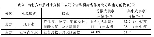 表2南北方水質對比分析(以遼寧省和福建省作為北方和南方的代表)【21】