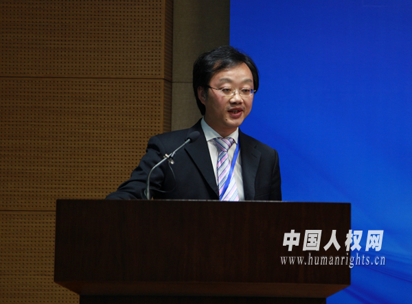 上海交通大學凱原法學院教授、中國人權(quán)研究會理事鄭戈教授在會上發(fā)言。(中國人權(quán)網(wǎng) 焦飛攝)