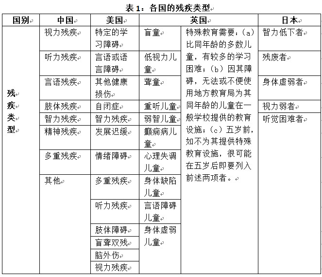 本文以《條例》為核心,在教育理念、殘疾觀、殘疾類型、特殊教育需要等方面與美國、英國和日本相關(guān)的特殊教育法進(jìn)行比較研究,以期探索中國特殊教育法治建設(shè)的發(fā)展方向。