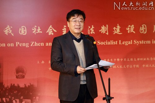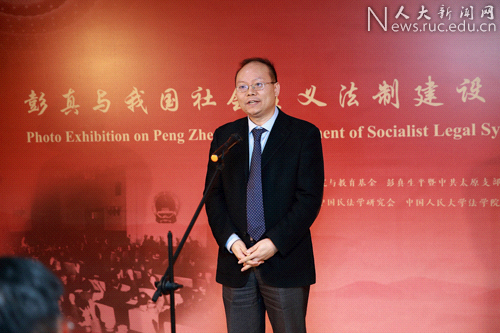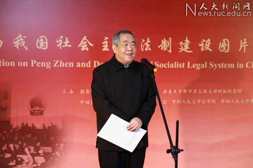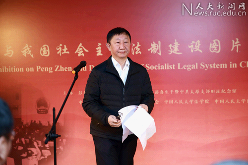 2017年12月4日上午10時,“彭真與我國社會主義法制建設圖片展”開幕式在中國人民大學博物館舉辦。本次展覽由彭真民主法制思想研究與教育基金、彭真生平暨中共太原支部舊址紀念館、中國憲法學研究會、中國民法學研究會、中國人民大學法學院和中國人民大學博物館聯(lián)合舉辦。出席本次活動的嘉賓有中國人民大學校長劉偉、第十屆全國人大法律委員會主任委員楊景宇,原全國人大常委會法工委副主任張春生,彭真民主法制思想研究與教育基金副理事長傅洋,中國人民大學法學院院長王軼,彭真基金副理事長、中國人民大學法學院教授韓大元,中國人民大學博物館副館長李惠,彭真生平暨中共太原支部舊址紀念館館長楊士彪,中國人民大學法學院教授朱力宇、周珂、王欣新以及法學院的部分教師。本次開幕式由中國人民大學法學院教授朱力宇主持。