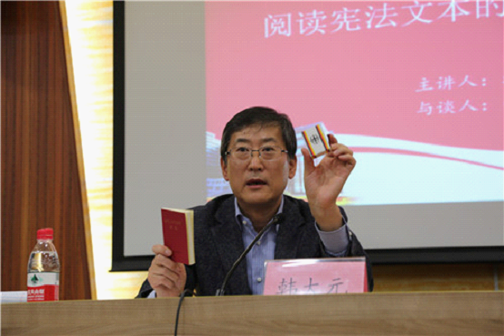 韓大元教授和與談嘉賓張翔老師圍繞如何閱讀和解釋憲法文本的主題生動幽默地演繹本次講座,宣揚尊重憲法文本、援法而言的憲法精神,令在座的師生受益匪淺。