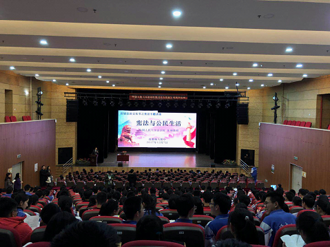 2017年12月7日下午,中國人民大學法學院憲法與人權宣傳周系列活動之一,中國人民大學法學院與首都師范大學附屬中學聯(lián)合舉辦的專題講座——憲法與公民生活在首都師范大學附屬中學成達廳成功舉辦。中國人民大學法學院副院長張翔教授應首都師范大學附屬中學的邀請,為現(xiàn)場聽眾帶來了一堂生動精彩的憲法公開課。來自首都師范大學附屬中學的高二年級全體學生和中國人民大學法學院法律援助中心的志愿者參加了本次活動。