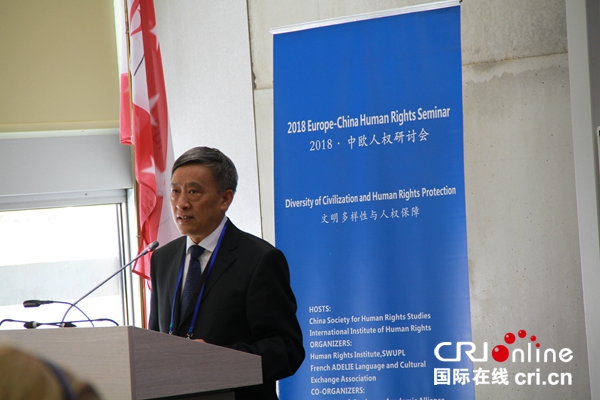 由中國(guó)人權(quán)研究會(huì)和國(guó)際人權(quán)研究院共同主辦的“2018·中歐人權(quán)研討會(huì)”6月28日在位于比利時(shí)布魯日的歐洲學(xué)院舉行。來(lái)自中歐人權(quán)領(lǐng)域的60多位專(zhuān)家學(xué)者圍繞“文明多樣性與人權(quán)保障”這一主題進(jìn)行了研討交流。