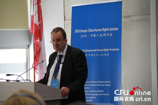阿姆斯特丹自由大學(xué)跨文化人權(quán)中心主任湯姆·茨瓦特發(fā)表題為《重塑<世界人權(quán)宣言>》的講話