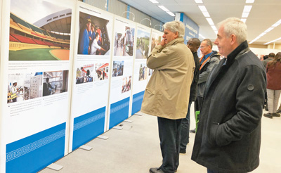 “新時代中國人權(quán)事業(yè)的發(fā)展”展覽11月5日在瑞士日內(nèi)瓦萬國宮開幕。圖為來賓正在參觀展覽。記者 方瑩馨攝