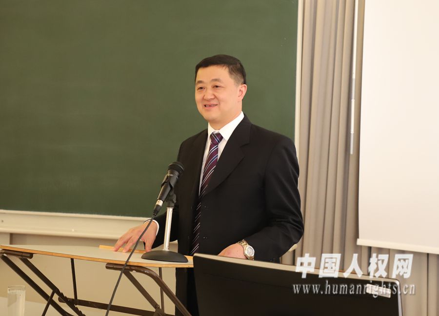 由中國人權(quán)研究會和奧中友好協(xié)會共同主辦的“2019•中歐人權(quán)研討會”將于21日在奧地利維也納召開,本屆主題為“東西方人權(quán)價值觀比較”。6月20日,與會的50余位中國人權(quán)專家學(xué)者來到奧地利薩爾斯堡大學(xué)法學(xué)院進(jìn)行交流座談。中國人權(quán)研究會秘書長魯廣錦在座談會上表示,愿不斷加深同奧中友好協(xié)會和薩爾斯堡大學(xué)的人權(quán)交流,促進(jìn)人權(quán)事業(yè)的共同發(fā)展。