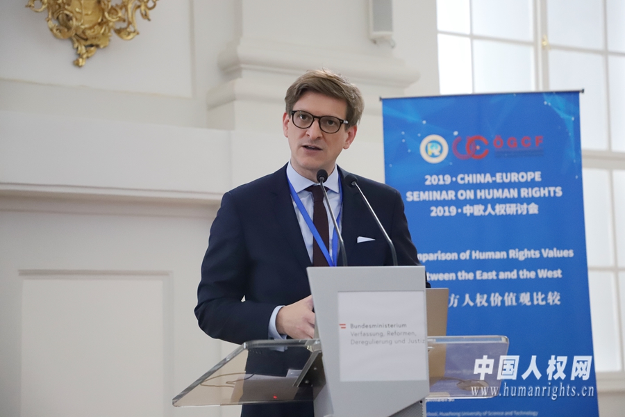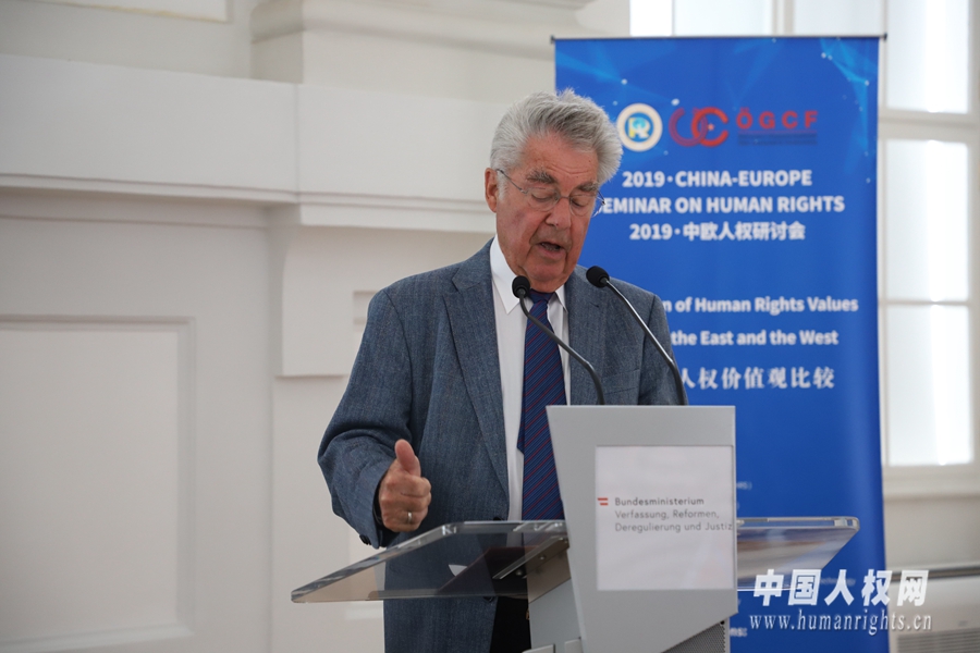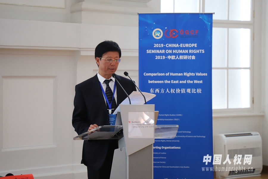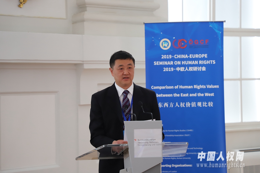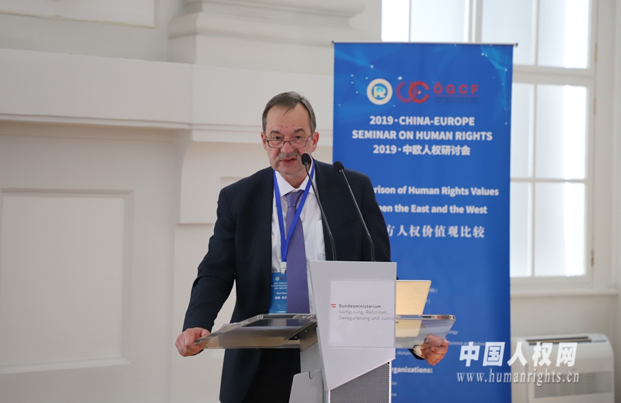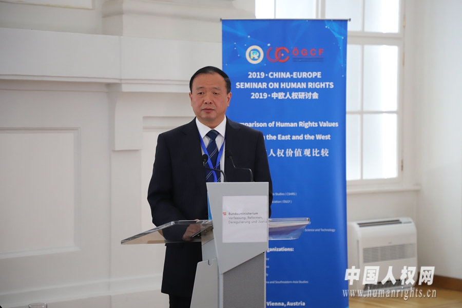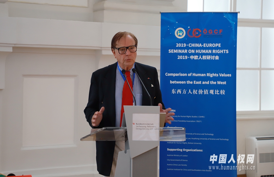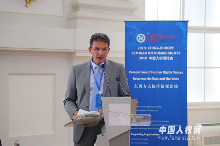 6月21日,由中國人權(quán)研究會(huì)和奧中友好協(xié)會(huì)共同舉辦的“2019·中歐人權(quán)研討會(huì)”在奧地利司法部舉行。研討會(huì)主題為“東西方人權(quán)價(jià)值觀比較”。”來自中歐人權(quán)領(lǐng)域的近100位專家學(xué)者、政府官員、社會(huì)組織代表圍繞人權(quán)的普遍性與特殊性、人類命運(yùn)共同體的人權(quán)意義、人權(quán)價(jià)值觀的歷史及其演變、新中國的人權(quán)實(shí)踐及其世界意義等內(nèi)容進(jìn)行了討論。