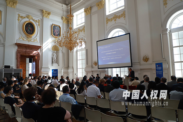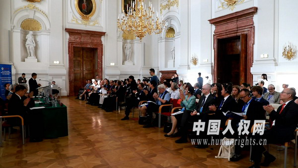 中國(guó)人權(quán)網(wǎng)6月25日訊 (賈璞玉)6月21日,由中國(guó)人權(quán)研究會(huì)和奧中友好協(xié)會(huì)共同舉辦的“2019•中歐人權(quán)研討會(huì)”在奧地利首都維也納舉行。來(lái)自中歐人權(quán)領(lǐng)域的近100位專(zhuān)家學(xué)者、政府官員、社會(huì)組織代表匯聚一堂,以“東西方人權(quán)價(jià)值觀比較”為主題,圍繞人權(quán)的普遍性與特殊性、人類(lèi)命運(yùn)共同體的人權(quán)意義、人權(quán)價(jià)值觀的歷史及其演變、新中國(guó)的人權(quán)實(shí)踐及其世界意義等內(nèi)容進(jìn)行了深入交流。