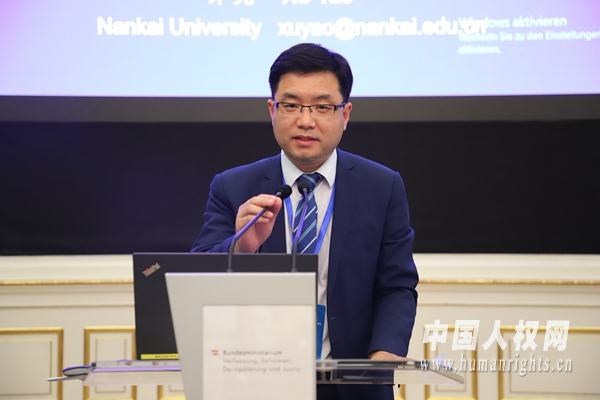 南開大學人權研究中心副研究員許堯在“主題四:新中國的人權實踐及其世界意義”上作題為《新中國70年保障貧困人口生活的歷程、軌跡與經驗》的發(fā)言。