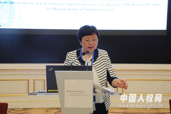 南開(kāi)大學(xué)人權(quán)研究中心副主任唐穎俠作題為《作為人權(quán)的環(huán)境權(quán)保護(hù)的中國(guó)經(jīng)驗(yàn)與發(fā)展路徑》的發(fā)言。