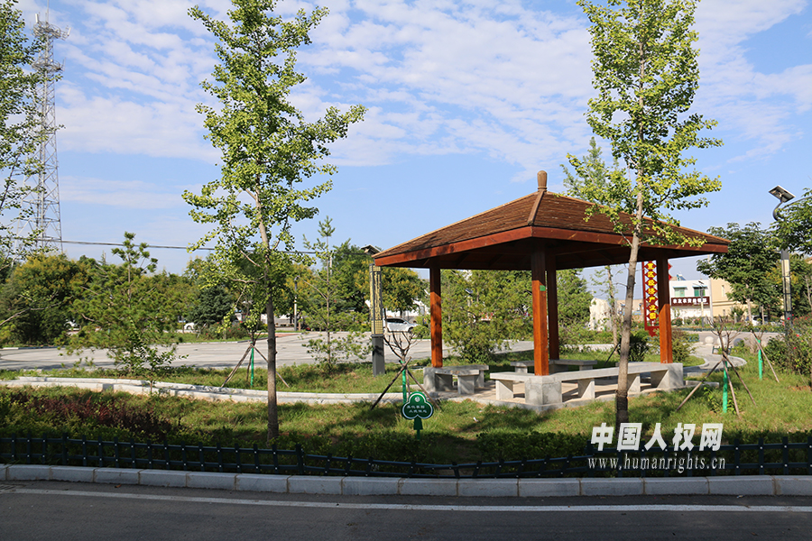 安置區(qū)中的廣場。安置區(qū)中的居民在休閑時刻會到廣場上進行運動健身活動。(攝影/陳可)