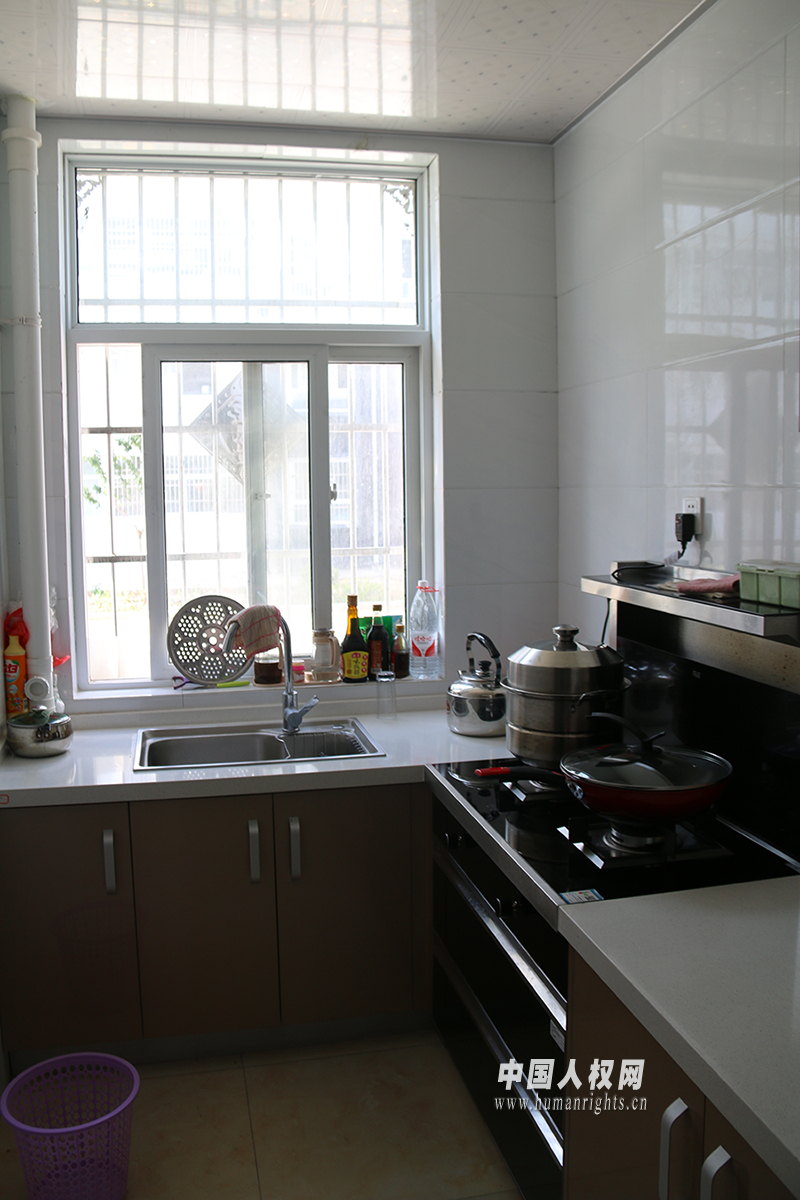 搬遷脫貧戶新家中充滿生活氣息的廚房。(攝影/陳可)