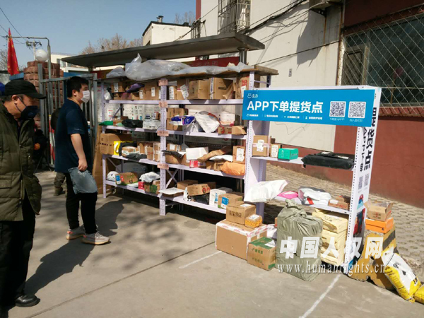 小區(qū)有專門的快遞架,小區(qū)居民在門口取自己的快遞。