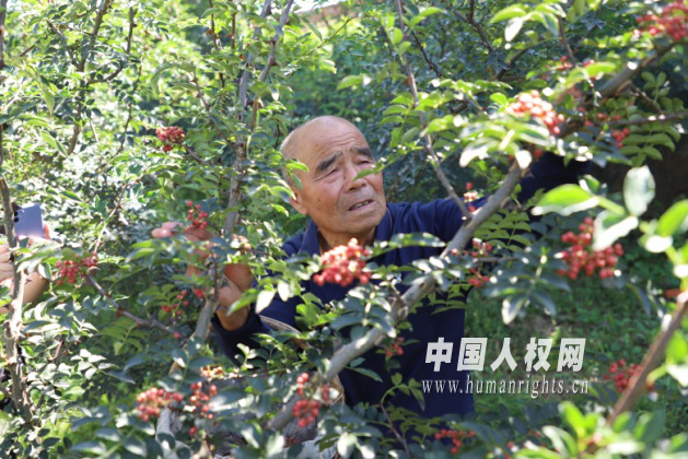 脫貧致富示范戶任金民和他種的花椒樹(shù)。