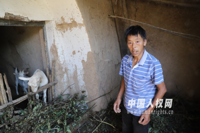 柴爭(zhēng)宏正在給飼養(yǎng)的奶山羊喂食草料,原來(lái)的窯洞現(xiàn)在變成了羊圈。