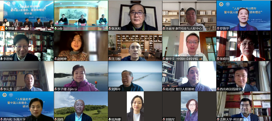 “人權藍皮書10周年暨中國人權理念、話語和理論”視頻研討會網絡會場。圖片來源:中國人權網