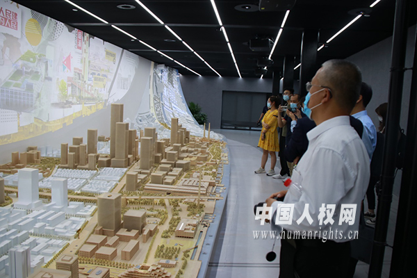圖為國家人權(quán)行動計(jì)劃實(shí)施成果采訪團(tuán)參觀楊浦濱江人民城市建設(shè)規(guī)劃展示館。(攝影:耿祎菲)