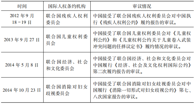 表2 2010-2019年中國接受國際人權條約機構的審議情況