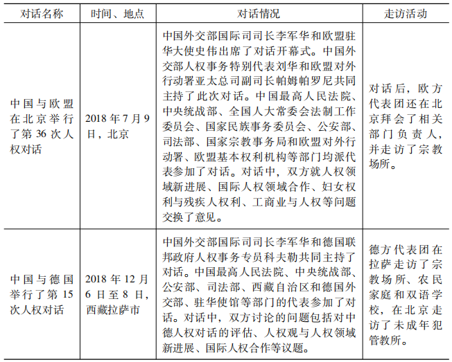 2018年,中國與西方發(fā)達國家也進行了4次雙邊人權對話。