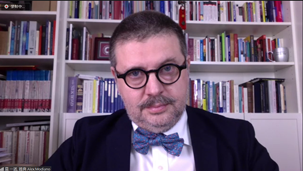 希臘東西方城市治理研究所董事會主席亞歷山大·莫一諾(視頻截圖)