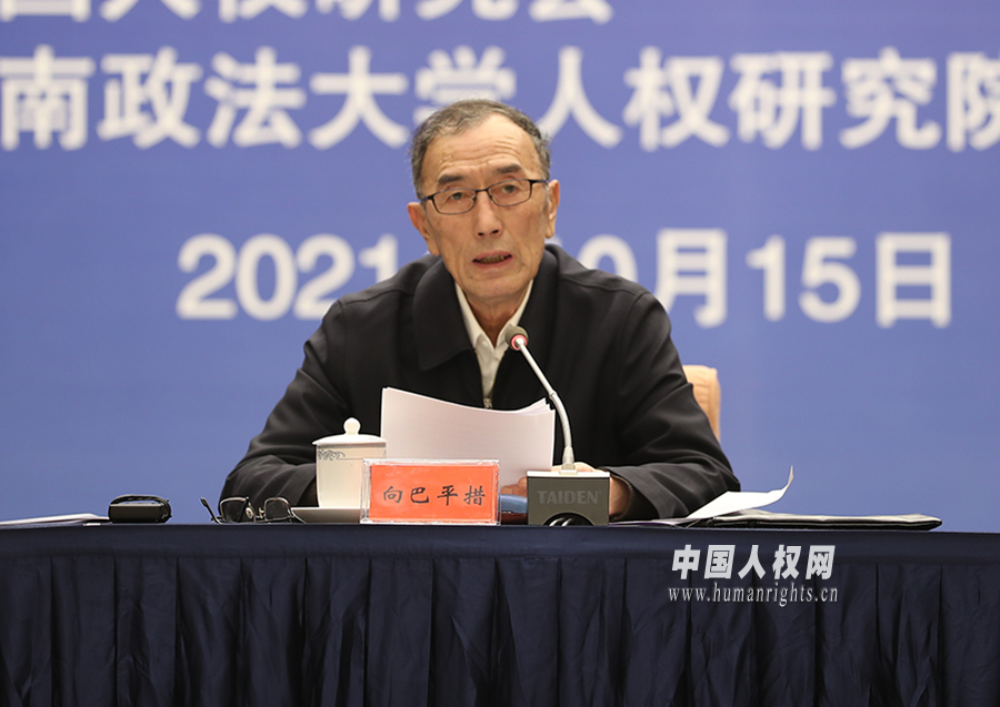 十二屆全國人大常委會副委員長、中國人權(quán)研究會會長向巴平措在紀(jì)念《中國的人權(quán)狀況》白皮書發(fā)表30周年學(xué)術(shù)研討會上講話?。▌⒔?攝)