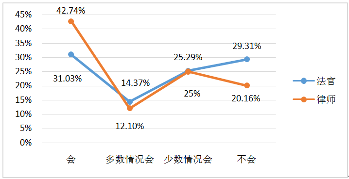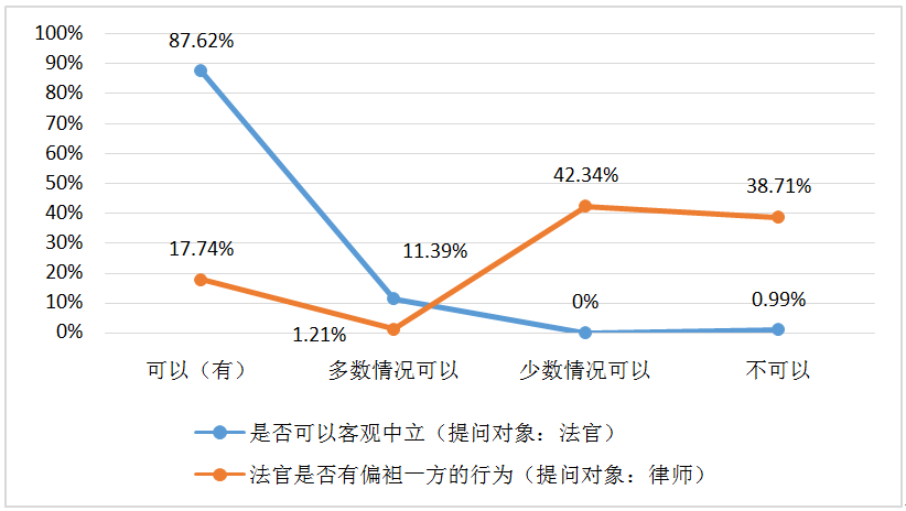 圖8(法官)您認(rèn)為您主辦的案件審理過(guò)程中,審判人員是否可以做到客觀、中立?(律師)在最近一年您代理的案件中,法官是否有偏袒一方的言行?