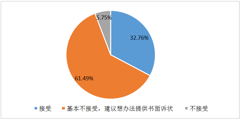 民事訴權(quán)為全體社會(huì)成員平等享有,國(guó)家有責(zé)任保障訴權(quán)行使存在困難的弱勢(shì)群體進(jìn)入司法程序的平等機(jī)會(huì),以確保公平正義的無(wú)差別實(shí)現(xiàn)。然而從調(diào)研結(jié)果來(lái)看,民事司法實(shí)踐對(duì)弱勢(shì)群體行使訴權(quán)的保障與民訴法所確立的人權(quán)保障精神存在一定差距。如圖4所示,在當(dāng)事人書寫起訴狀存在困難時(shí),僅有32.76%的立案窗口支持其口頭起訴,另外占比近七成的立案窗口不接受口頭起訴,其中61.49%會(huì)建議當(dāng)事人想辦法盡量提供書面訴狀。同時(shí),近三成的律師和法官都認(rèn)為現(xiàn)行有關(guān)訴訟費(fèi)用緩交、減交、免交的規(guī)定,對(duì)于繳納費(fèi)用確有困難的當(dāng)事人的幫助尚不充分。由此可見,在權(quán)利救濟(jì)需求普遍化和大眾化的現(xiàn)代社會(huì)中,司法制度應(yīng)提高成本意識(shí),否則弱勢(shì)群體訴權(quán)的實(shí)現(xiàn)將受到較大限制,民事訴訟的權(quán)利救濟(jì)功能也將因此無(wú)法完全發(fā)揮。
