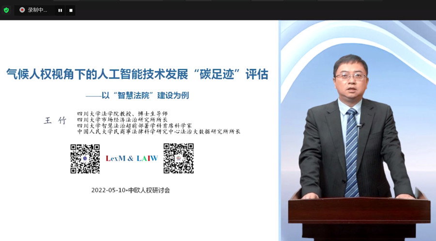 四川大學(xué)法學(xué)院教授王竹在會上作題為《從環(huán)境人權(quán)角度看人工智能技術(shù)的發(fā)展——以智慧法院建設(shè)為例》的發(fā)言。