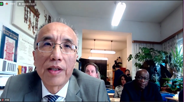 中國(guó)駐奧地利大使李曉駟在“2022·中歐人權(quán)研討會(huì)”開(kāi)幕式上致辭(視頻截圖)