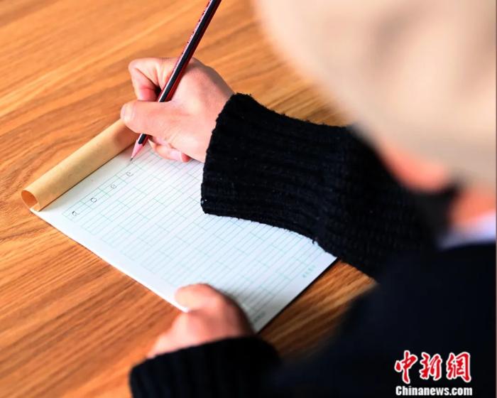 甘肅臨夏,在莊窠集鎮(zhèn)鄉(xiāng)村振興巾幗行動培訓班上,參訓學員書寫漢語拼音。該培訓班旨在讓當?shù)匚瓷线^學的婦女通過培訓獲得基礎發(fā)展能力。九美旦增 攝