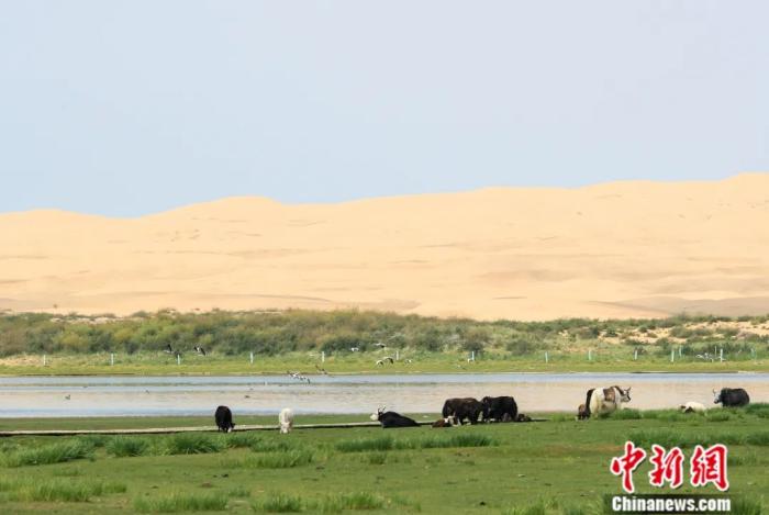 青海省海晏縣,青海湖沙島內的濕地生態(tài)良好。沙島曾以獨特的沙丘景觀聞名,經(jīng)過生態(tài)治理,島上植被覆蓋率接近70% 。賈天勇 攝