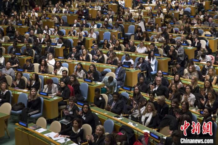 2018年3月8日,聯(lián)合國紐約總部舉行國際婦女節(jié)慶?;顒?,婦女代表參加會議。廖攀 攝
