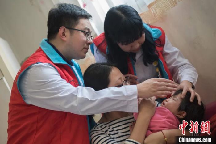 2018年春運期間,山西太原火車站母嬰候車室,醫(yī)療志愿者為候車兒童檢查身體。韋亮 攝