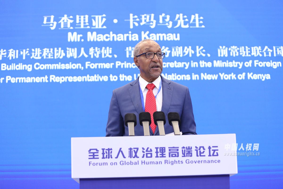 6月14日-15日,全球人權治理高端論壇在北京舉辦。圖為肯尼亞內(nèi)羅畢和平進程協(xié)調(diào)人特使、肯前常務副外長、前常駐聯(lián)合國代表馬查里亞·卡瑪烏作大會發(fā)言。攝影:欒海軍