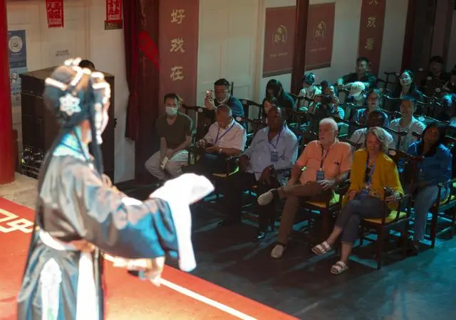 嘉賓在顏料會館欣賞京劇。 中國日報記者 陳澤冰 攝