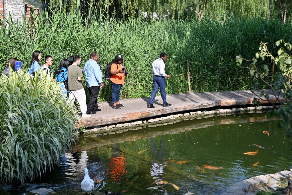 外賓參觀北京前門三里河公園。新華社記者 李鑫 攝