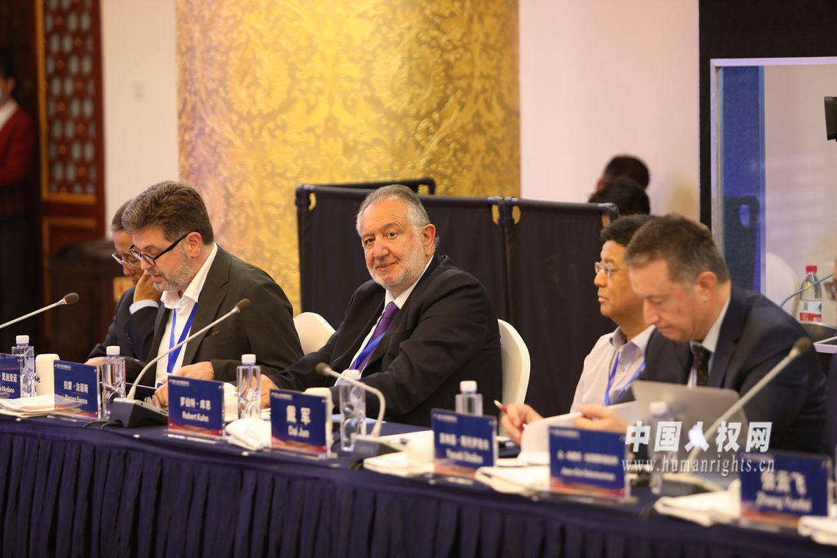 全球人權治理高端論壇14日-15日在北京舉行。圖為部分與會嘉賓在“分論壇二:全球發(fā)展倡議與發(fā)展權的實現(xiàn)”上交流研討。 攝影:欒海軍