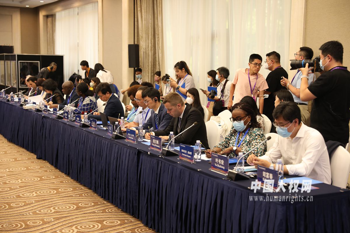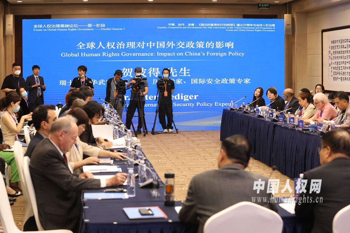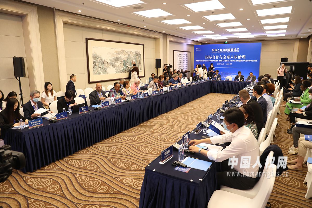 全球人權(quán)治理高端論壇14日-15日在北京舉行。圖為部分與會嘉賓在“分論壇一:國際合作與全球人權(quán)治理”上交流研討。攝影:欒海軍